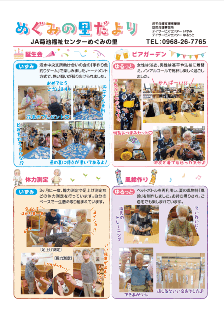 誕生会/ビアガーデン/体力測定/風鈴づくり クリックすると拡大してご覧いただけます。 この記事は、JA菊池広報誌いぶき10月号…