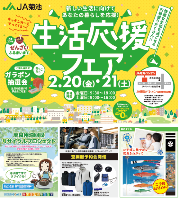 日頃より、JA菊池をご利用いただき誠にありがとうございます。 JA菊池では生活応援フェアを開催します!! 〇日時:2月20日(…