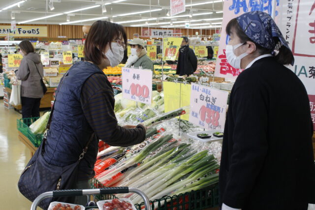 JA菊池葱部会は1月31日、熊本市の鮮ど市場東部店で試食販売会を開きました。旬の時期を迎え、白ネギの県内での販売強化を目的にPRを行いました…