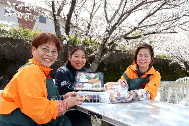 菊陽町にあるJA菊池が直営する「農産物市場きくちのまんま菊陽店」は4月上旬、花見シーズンに合わせ、店舗敷地内の桜の木の下にアウトドアテーブル…