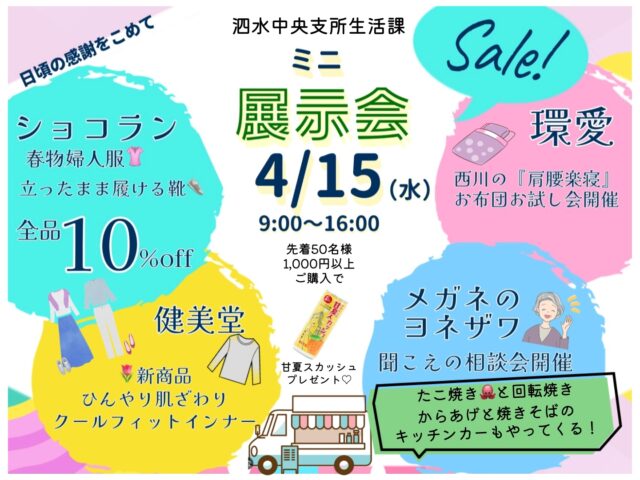 日頃よりJA菊池をご利用いただき、誠にありがとうございます。 JA菊池泗水中央支所生活課では、日頃の感謝を込めてミニ展示会を開催いたします!…