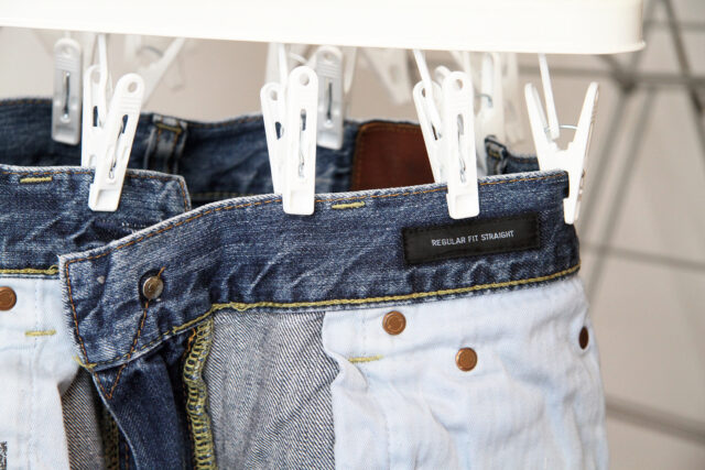 ポケットなど別布の多いジーンズなどは、裏返して干すと乾きが早くなります