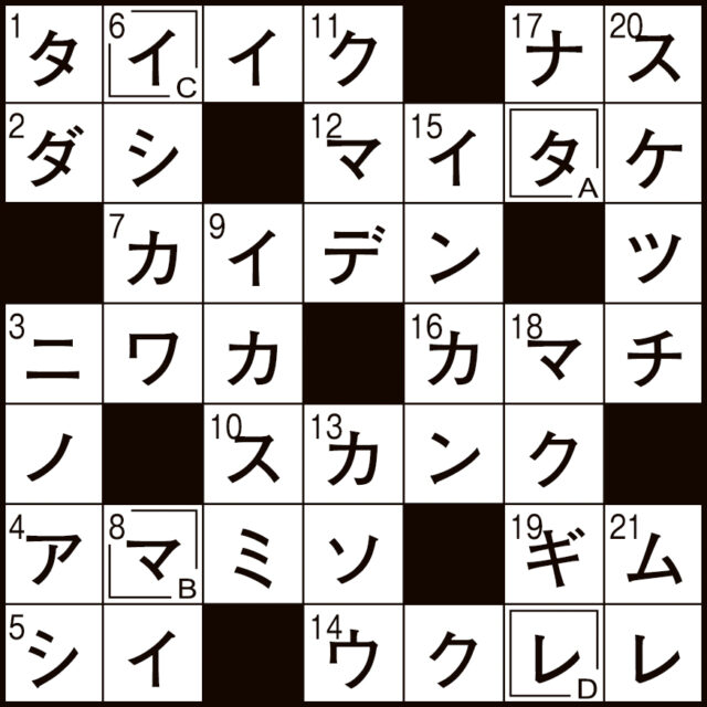 二重マスの文字をA〜Dの順に並べてできる言葉は何でしょうか?