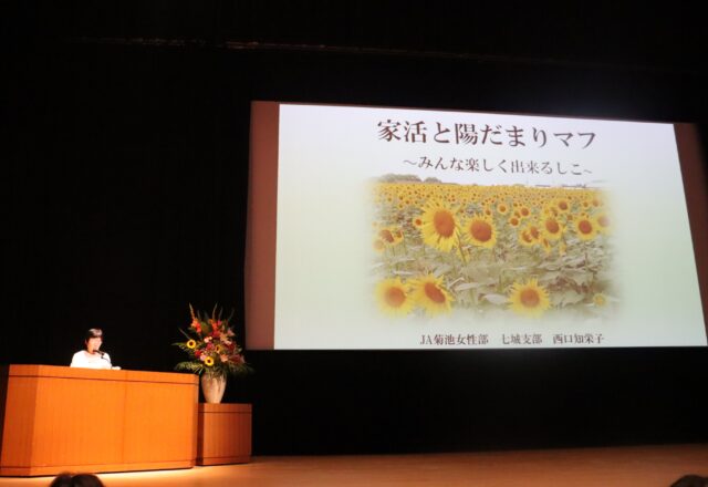 JA菊池女性部は8月30日、夏の学習会「サマーレディーススクール&家の光大会」を合志市総合センター「ヴィーブル」で開き、部員や地域住民ら500人が参加しました。