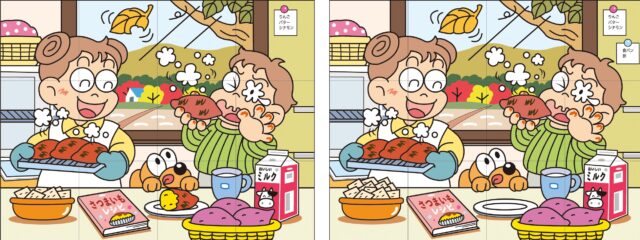 右のイラストには左のイラストと違う部分が5カ所あります。