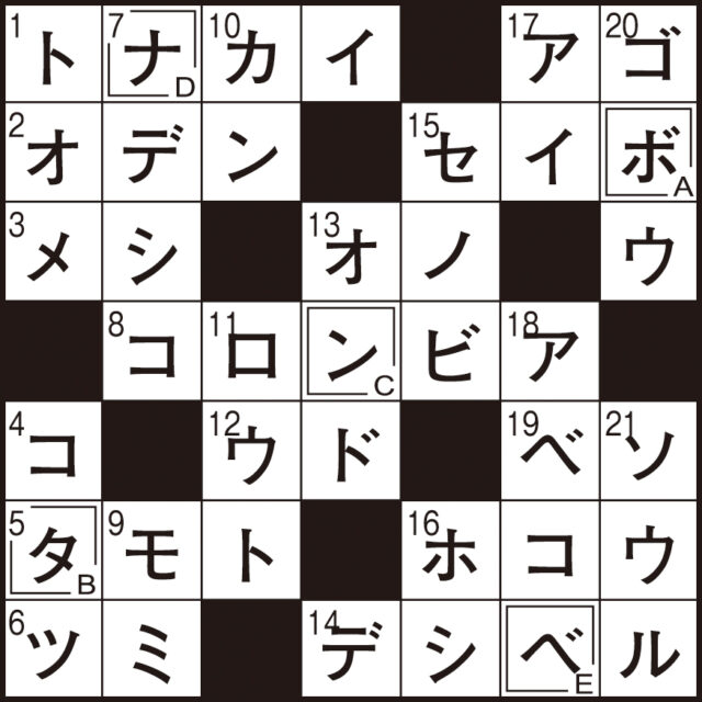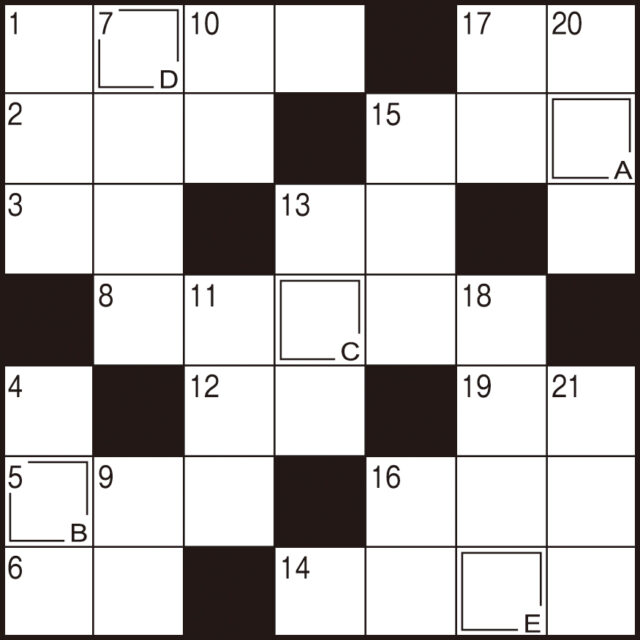 二重マスの文字をA〜Eの順に並べてできる言葉は何でしょうか?