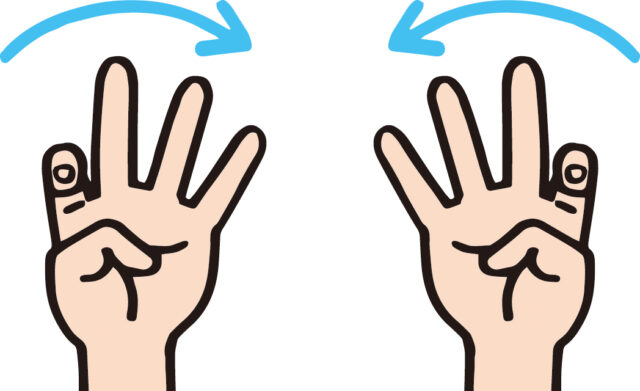(4)両手の指を小指から親指の順で同時に素早く伸ばします。(1)~(4)を10回程度が目安です。