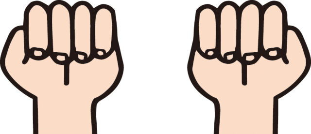 (3)全ての指を折り曲げて両手をグーにします。