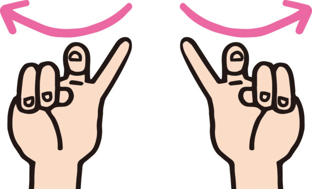 (2)両手の指を親指から小指の順で同時に素早く折り曲げます。