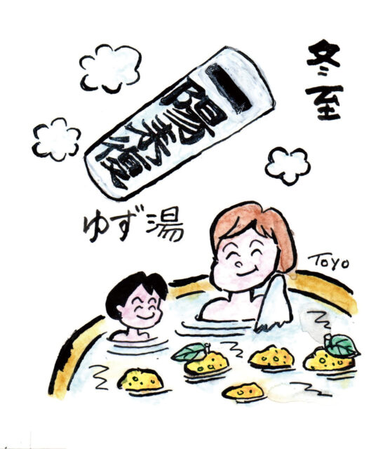冬至の夜にはゆず湯に入ります。香りで邪気をはらい、一年無病息災でいられると信じられています。