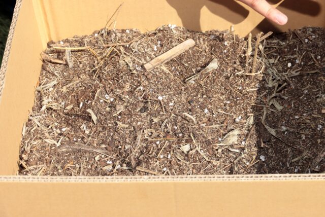 コンポストセットは専用段ボール・基材(竹チップ入り土壌)・発酵促進剤で1100円(税込)。段ボールを除く基材と発酵促進剤のみを希望の場合は660円(税込)で販売。注文受付は、熊本ドライビングスクール(熊本市北区楠6―25。TEL:0120-373-634)、菊地自動車学校(菊池市木柑子1427.TEL:0120-374-571)