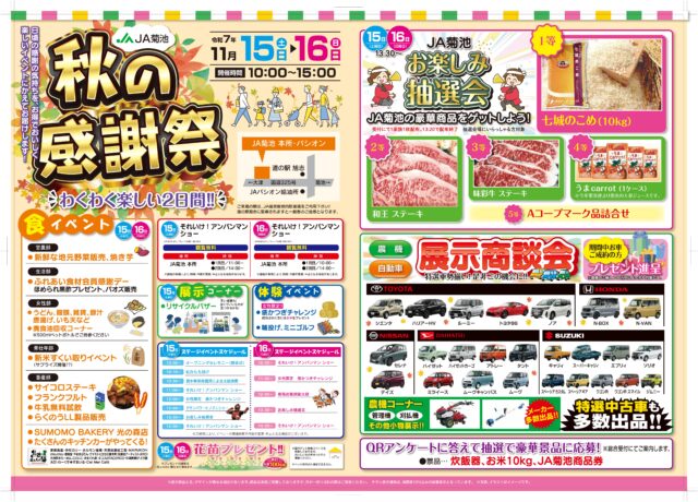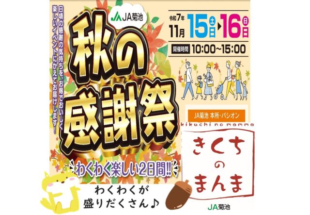 11月15日(土)~16日(日)の2日間、JA菊池秋の感謝祭を開催します!!