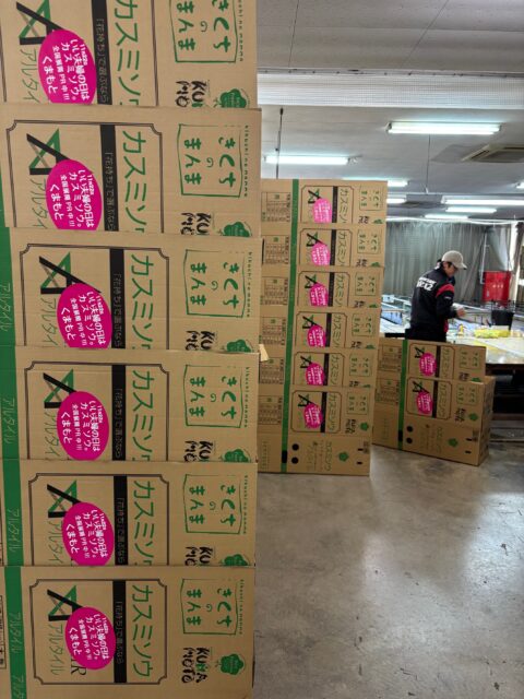 JA菊池北営農センターで宿根カスミソウの出荷が進んでいます。11月22日の「いい夫婦の日」に向けて、出荷箱に「いい夫婦の日はカスミソウ」の県下JAグループ特製シールを貼って、アピールに力を入れています。
