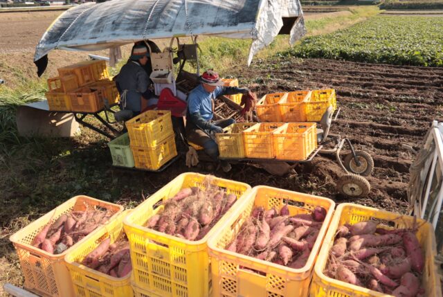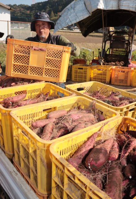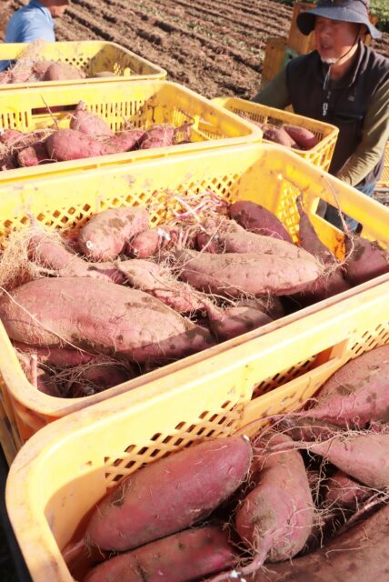 JA甘藷(かんしょ)部会の大田黒裕樹部会長は「高温が続き心配したが良いサツマイモができている。サイズも大きく、収量も多い。収穫作業ももう一息」と話し、収穫機をフル稼働させながら、収穫と貯蔵に多忙です。