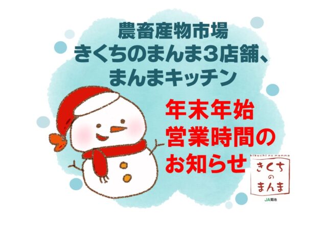 農産物市場3店舗・まんまキッチン年末年始 営業時間のお知らせ