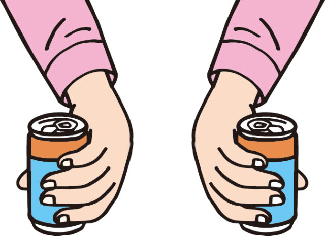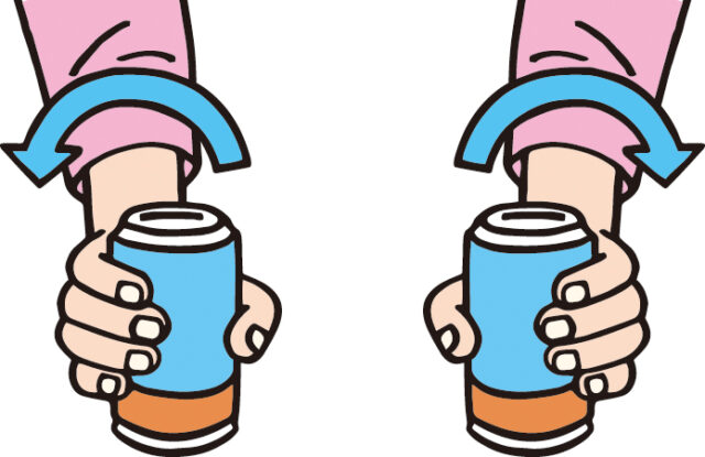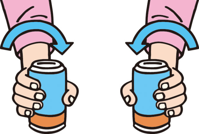 お茶やジュースなどが入った缶を使って手首を鍛えてみましょう。