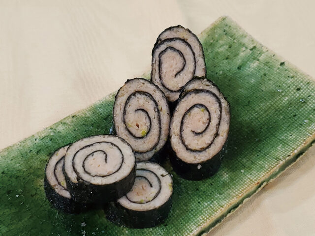 食卓を彩る とっておきレシピ 鶏肉のうま味とのりが好相性 鶏ひき肉の 鳴門巻き
