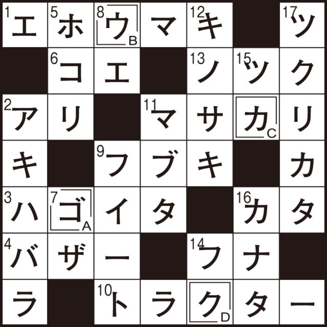 Q 二重マスの文字をA〜Dの順に並べてできる言葉は何でしょうか?