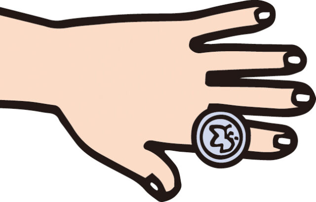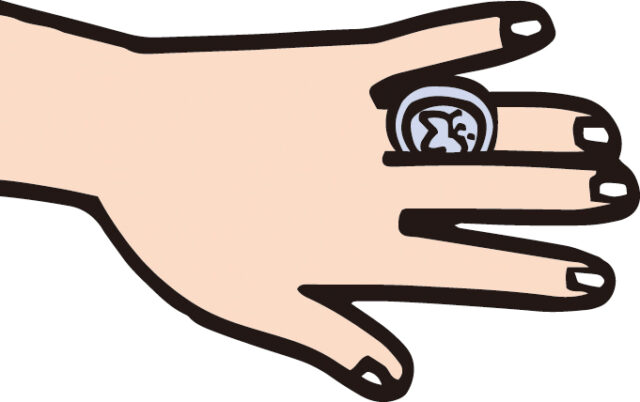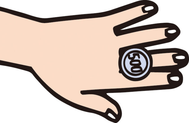 (1)左手の人さし指の背に500円玉を乗せます。
