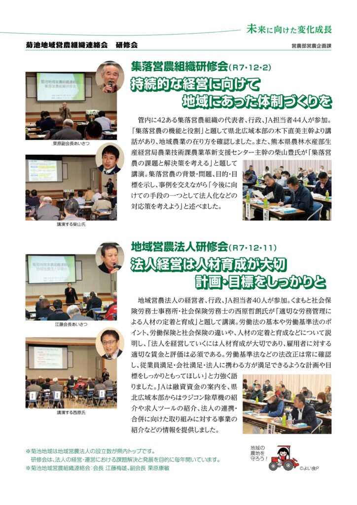 お知らせ 2026.01.12 お知らせ 未来に向けた変化成長 菊池地域営農組織連絡会 研修会 クリックすると拡大してご覧いただけます。 この記事は、JA菊池広報誌いぶき2月号P4にも掲載しております。 甘藷部会 県内最大のカンショ産地 記事一覧へ カテゴリー お知らせ 組合長からのメッセージ 各部署からのお知らせ 求人情報 新型コロナ感染症の対応 きくちのまんま新聞 イベント情報 女性部 青壮年部 まんまキッズスクール めぐみの里だより 防疫協議会だより CBSだより 広報誌 いぶき コミュニティーいぶき ほっと一息 プレゼントクイズ 家庭菜園コーナー 旬の情報 レシピ SDGSで検索
