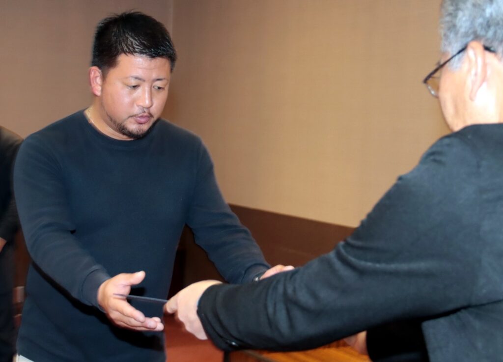 優秀農家の表彰では、高額賞7人、反収賞3人の他、販売高前年対比120%以上の生産者を躍進賞として6人を表彰。その中で特別賞に緒方さん・佑梨子さん、新人賞に上田さんを選んだ。上田さんは高額賞、反収賞も受賞し、三冠を獲得しました。