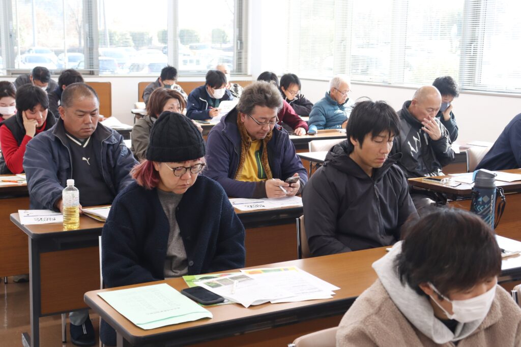 JA菊池アスパラガス部会は1月8日、栽培講習会をJA情報センターパシオンで開きました。冬から春にかけての栽培管理や除草剤使用について講習。県北広域本部農業普及・振興課山口愛実主任技師が保温開始前後と立茎の管理のポイントなどを説明。JA熊本経済連肥料農薬課岡部貴紀課長補佐が除草剤の分類や特性、使用上の注意点について講習しました。部会員20名のほか、JA資材店舗担当者ら6名も参加。生産現場を理解し、指導と資材店舗が情報を共有することで生産者へのサービス向上にもつなげる狙いです。