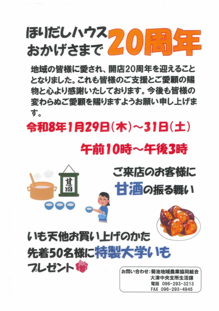 ほりだしハウスが開店から地域の皆様に愛され、20周年を迎えることとなりました。