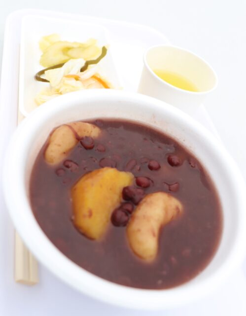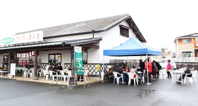JA菊池農畜産物市場「きくちのまんま」菊池店は2月7日、来店者にぜんざいを振る舞いました。材料は全て菊池産で約200人分を用意。農産物市場出荷協議会のまんまクラブ役員が生産した小豆や会員が生産したサツマイモ、小麦粉と団子粉をブレンドした団子を使い、サツマイモや一口サイズの団子がごろっと入ったぜんざいに来店者の笑顔が広がりました。