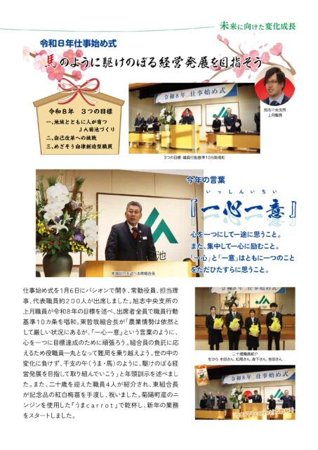 お知らせ 2026.02.25 お知らせ 令和8年仕事始め式 馬のように駆けのぼる経営発展を目指そう クリックすると拡大してご覧いただけます。 この記事は、JA菊池広報誌いぶき3月号P4にも掲載しております。 イチゴ豆知識 イチゴ部会 記事一覧へ カテゴリー お知らせ 組合長からのメッセージ 各部署からのお知らせ 求人情報 新型コロナ感染症の対応 きくちのまんま新聞 イベント情報 女性部 青壮年部 まんまキッズスクール めぐみの里だより 防疫協議会だより CBSだより 広報誌 いぶき コミュニティーいぶき ほっと一息 プレゼントクイズ 家庭菜園コーナー 旬の情報 レシピ SDGSで検索