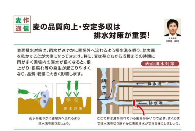 お知らせ 2026.03.07 お知らせ 麦作通信 麦の品質向上・安定多収は排水対策が重要! クリックすると拡大してご覧いただけます。 この記事は、JA菊池広報誌いぶき3月号P23にも掲載しております。