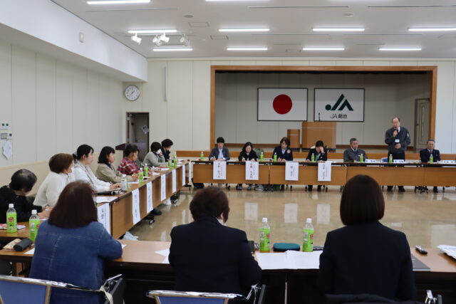 女性部部役員ら12人とJA役職員ら20人が参加。東組合長は「JAにとって女性の思いや支えは大きい。いただいた意見を大切にし、一緒により良い組織を作っていきたい」とあいさつ。