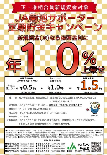 JA菊池サポーターキャンペーン 「定期貯金」のご案内