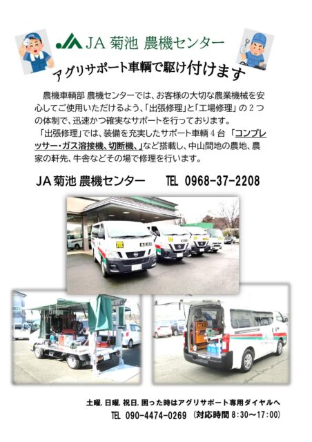 ◎JA菊池農機センター TEL:0968-37-2208【菊池市旭志小原251(旧 旭志センター)】