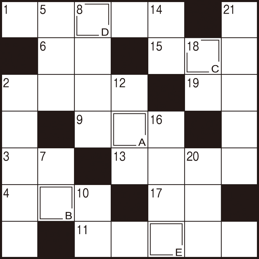 二重マスの文字をA~Eの順に並べてできる言葉は何でしょうか?