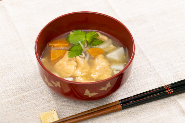 - ①をお好みの大きさのだごにして加え、浮いてきたらBを加えて味を整える。
