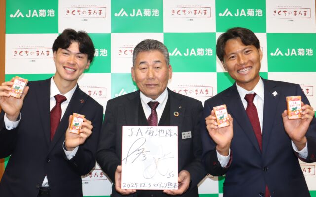 ニンジンジュース「うまcarott」で選手激励 菊陽町特産のニンジン使用 JA菊池が活躍をねぎらう