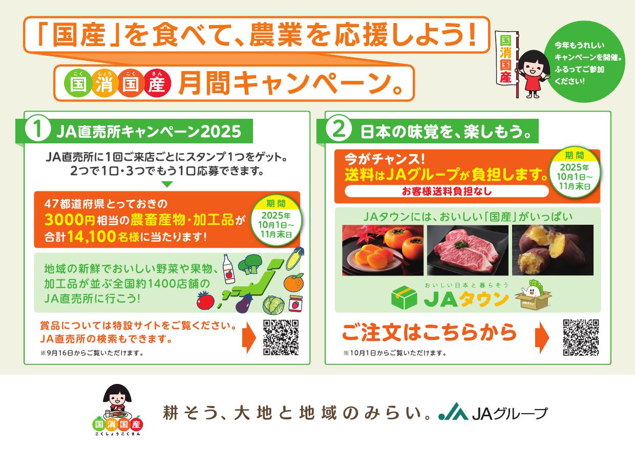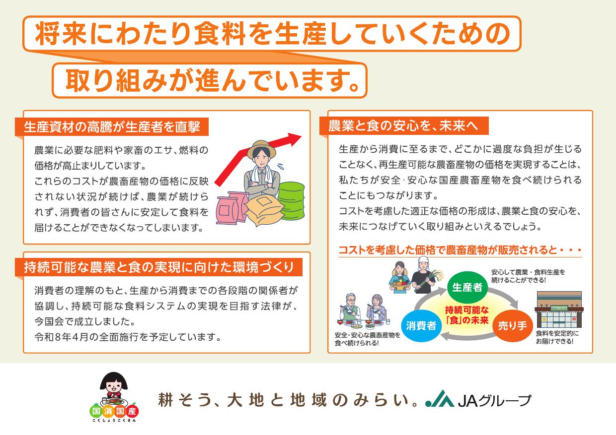 これからもJAグループは、一人でも多くの方に「国消国産」の考えに賛同いただき、日本農業を応援していただけるよう、取り組みをすすめてまいります。