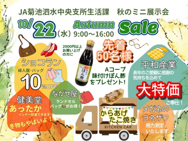 日頃よりJA菊池をご利用いただき、誠にありがとうございます。 七城中央支所では収穫感謝祭を開催します☆ ・日時:11月2日(日)午前9時30…