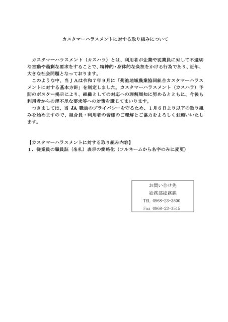 昨年中は格別のご厚情を賜り厚くお礼申し上げます 新年を迎え 更なる地域農業の振興と 地域社会への貢献に尽力し 皆様に信頼されるJA菊池を目指…