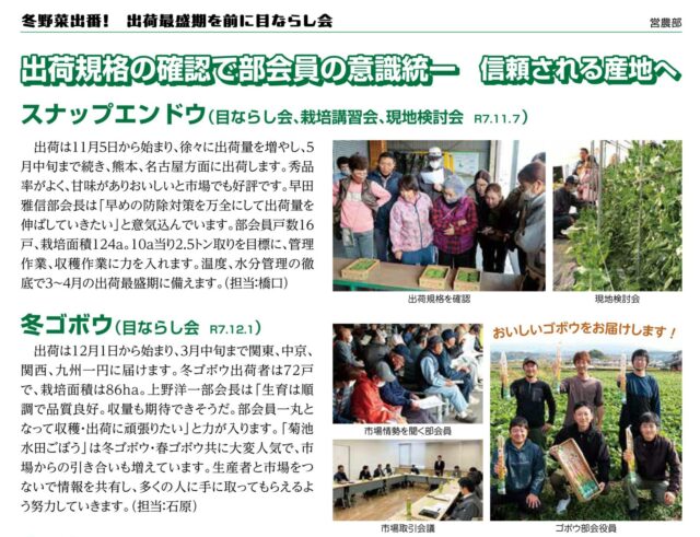 出荷規格の確認で部会員の意識統一信頼される産地へ クリックすると拡大してご覧いただけます。 この記事は、JA菊池広報誌いぶき2月号P6にも…