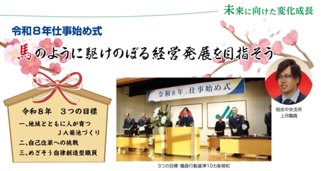 未来に向けた変化成長に向けて邁進してまいります クリックすると拡大してご覧いただけます。 この記事は、JA菊池広報誌いぶき1月号P2~3にも…