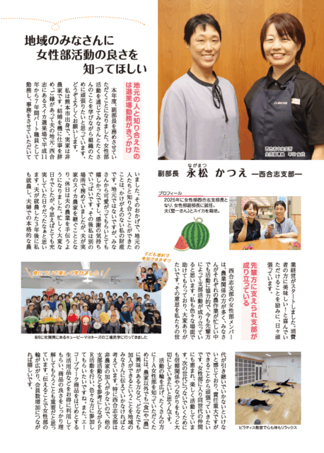 副部長永松かつえ―西合志支部― クリックすると拡大してご覧いただけます。 この記事は、JA菊池広報誌いぶき10月号P12に…