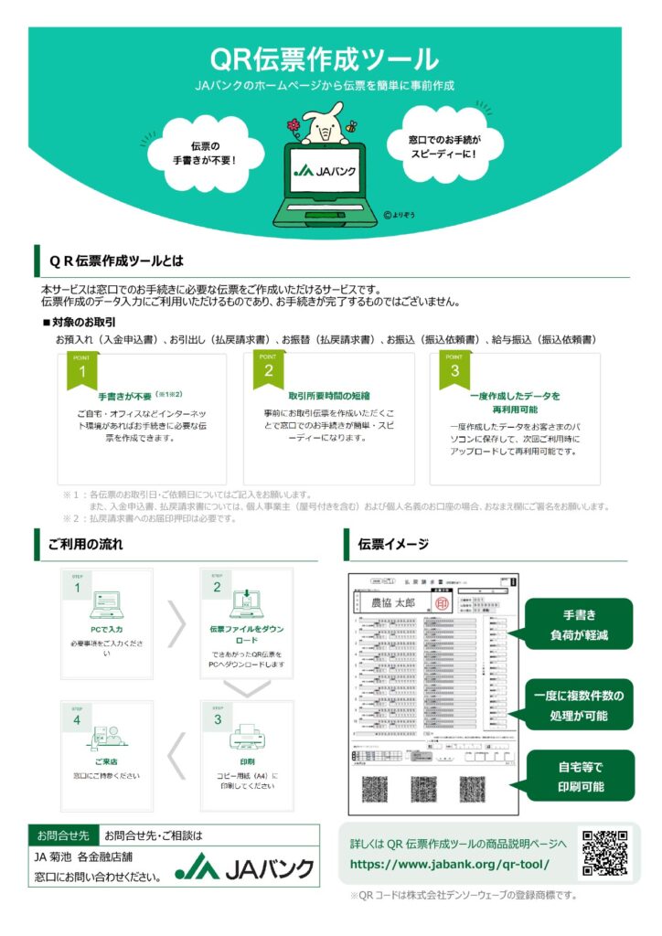 ※当JA(菊池地域農業協同組合)以外を選択して作成されたQR伝票はお取扱いできません。